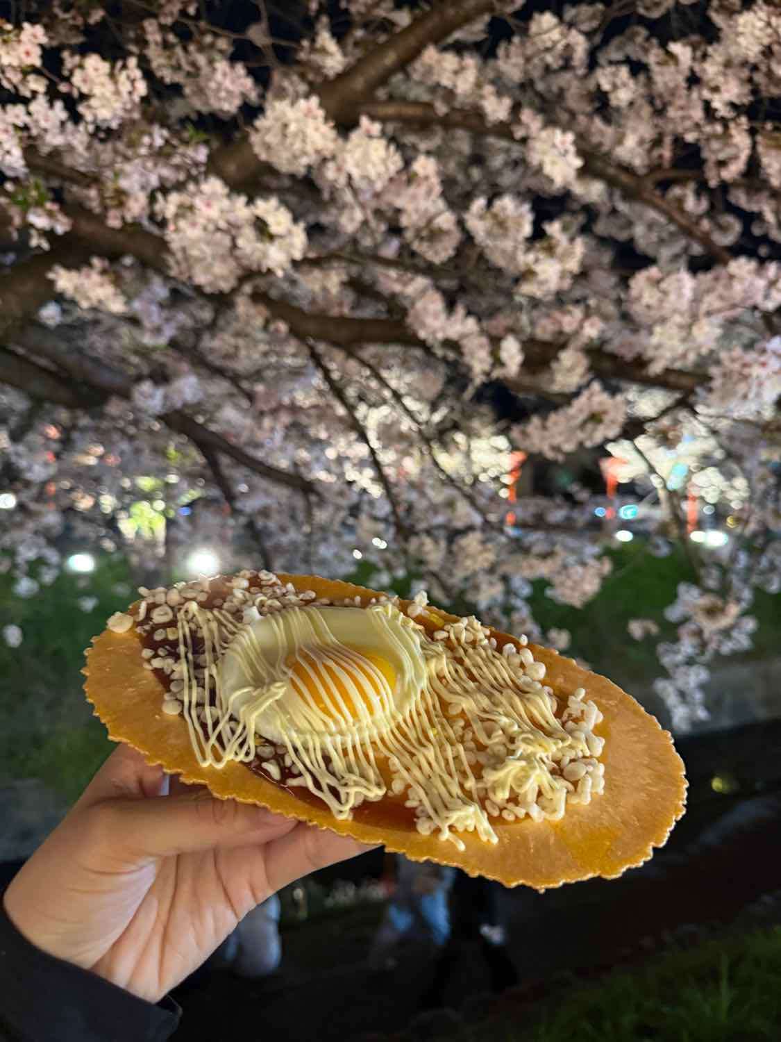 我が家の恒例行事、花見(屋台でいろいろ買って食べるのが楽しみ)に、昨晩行ってきました^^