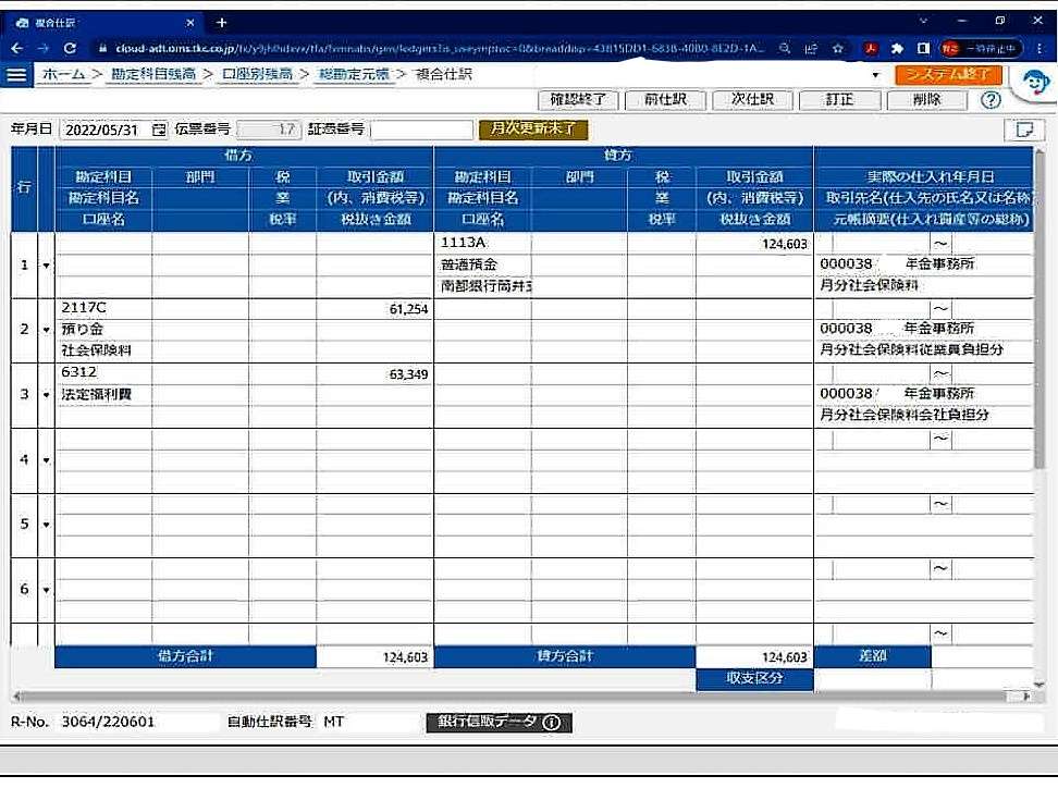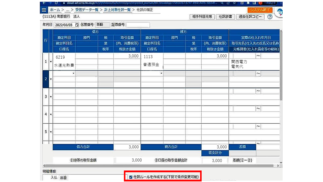 おそらく、複合仕訳にも対応しているのはTKCシステムだけだと思います。