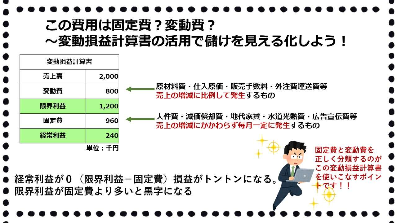 変動損益計算書を経営に活用するには固定費と変動費の見極めが重要になってきます。