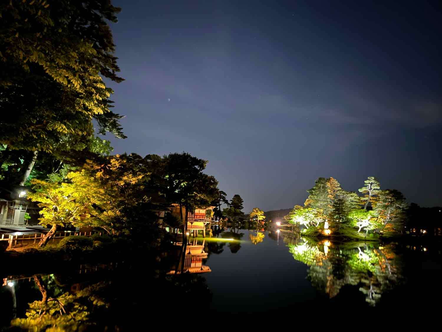 昔、日中にも兼六園へ訪れたことがあるのですが、夜の兼六園はまた幻想的で、ご夫婦やカップルで来られている方も多かったです。