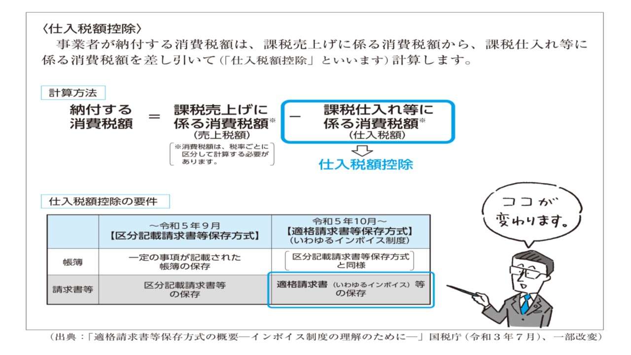 仕入税額控除を適用するためには、原則として、売り手から交付を受けたインボイス(適格請求書)の保存が必要で、その取引がインボイス(適格請求書)とわかるように帳簿に記載し、その帳簿も保存しなければなりません。