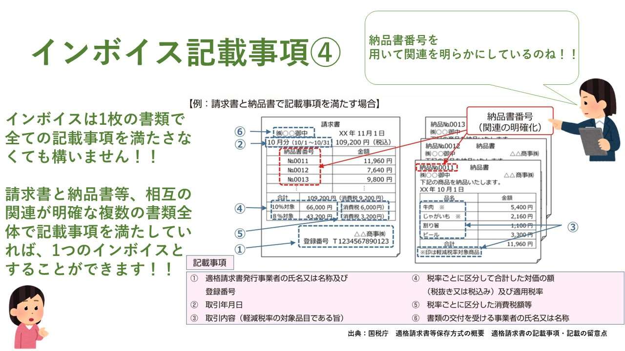 インボイス制度とは? わかりやすくご説明します!⑨ インボイスの記載事項④ 複数書類による対応 【奈良県・田中智之税理士事務所】